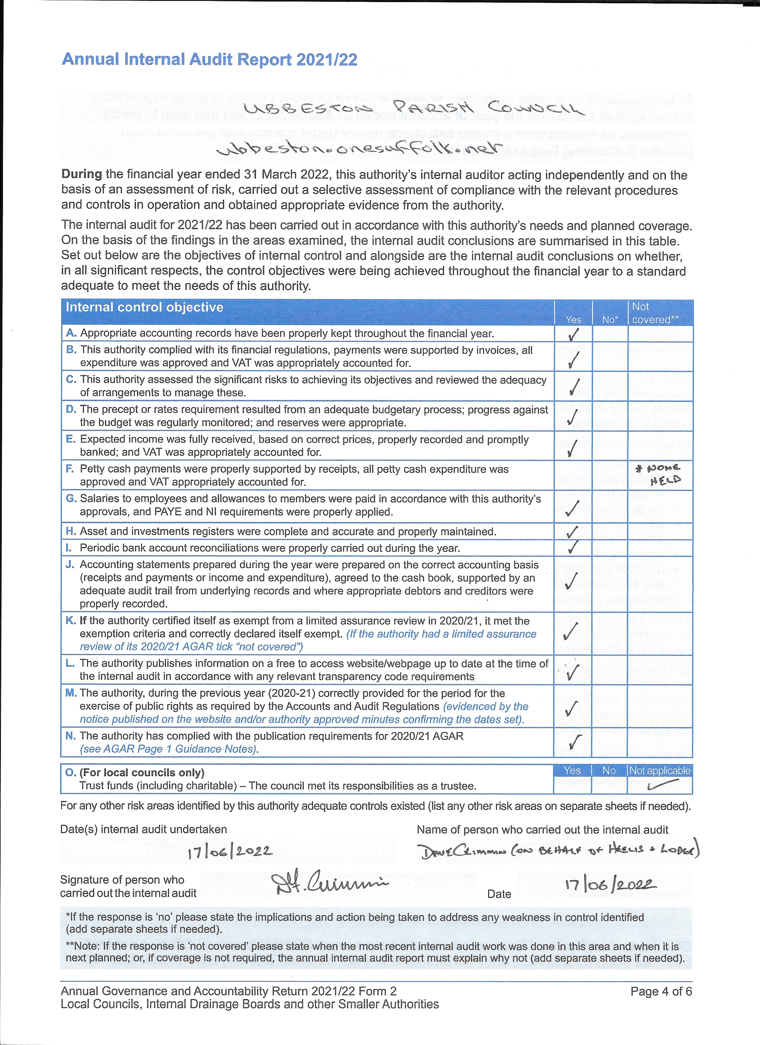 Parish Council » Audit 2021-2022